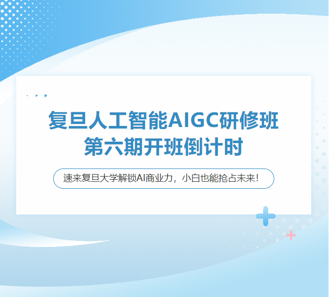 AI已经成为企业增长与创新的核心动力。复旦AIGC研修班,助你抢占智能时代先机,让小白也能掌握AI商业实战!
